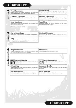 - Katakura Kojuurou: Vice president of the Date clan. Full of intense highs and lows.