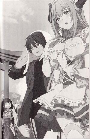 Someone else put her hands on her miniskirted hips next to Kyousuke. She had pink hair and a sexy body that she readily showed off with a combination of a waitress uniform, demon horns, and a demon tail. She too was a summoner: Freedom Award 920, Liar Cat. She was a survivor of the Fifteen Siblings Project which had developed into a true hell thanks to its close connection to the Queen. Perhaps because the Summoning Ceremony rules said any who reached Award 1000 would become a resident of the other world, she had already taken a step toward becoming a legend herself.