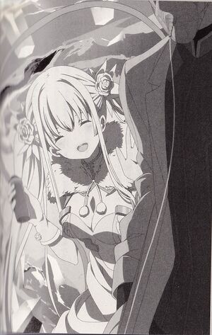 “Approaching you disguised as Meinokawa Aoi was no more than what you could call a practice run.” The White Queen smiled. “Since you ultimately had your doubts, I guess I can’t say I earned a perfect score, but since I did successfully bind a contract with you and face the same enemy alongside you, it wasn’t a failing score either. Now, brother, it’s time for a review. Where did I go wrong in all this? Was it wearing the red hakama? Or was it too hard to distract you when Doctor S was such a lackluster decoy enemy?”