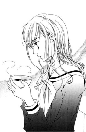 A pleasant guitar melody from the folk-song club came drifting in through the window that faced the courtyard. Rei-sama was reading a new novel, Sachiko-sama was writing something in her student diary, and, as the 'heating' light on the kettle had just gone out, Shimako had reached out for the teacups.