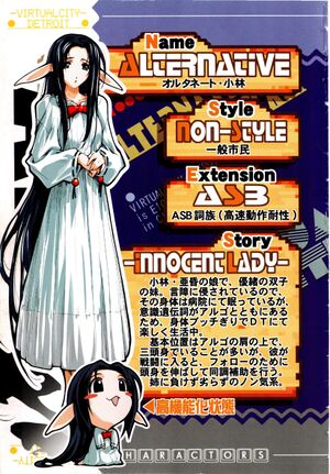 Kobayashi Akon’s daughter and Yuo’s twin sister. She is asleep in the hospital with Words Warn, but her Mind Lives are with Algo, so she is enjoying life freed from her body in DT.