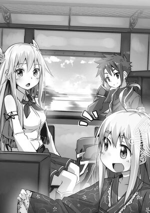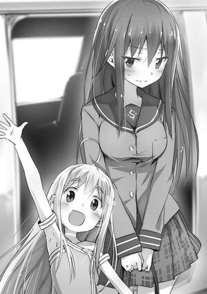 - ↑ The original line "あわてて履行不能の因果を含めようとする二人だったが," roughly means that the two were trying to explain that they aren't a couple. In which case, for Haruha, that can't be the case since in her understanding the two are married and gave birth to her. 履行不能の因果 basically mean "an established fact that impossible to happen" which referring to their circumstances (Yuu and Miharu aren't a couple, but give birth to Haruha). I can't find a way to translate this line properly, so I omitted part of it. - daniman1