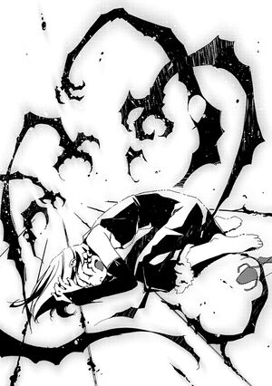 The claws born by Kasuou's ability grazed Daisuke in the last second and stabbed into the floor. Unable to stop her momentum, she ended up in a posture facing Daisuke from up close.