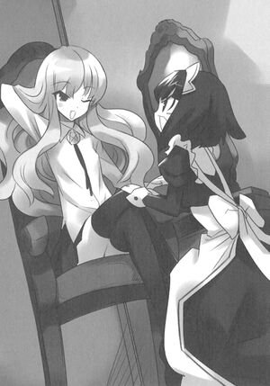 In silence, while still wearing the habit that she always wore during her stay in Saint Margarita, Louise offered no resistance as Saito carried her in his arms.