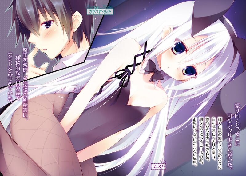 Long lustrous silver-white hair. Clad over her milky-white skin was a tight-fitting, erotic, enameled outfit. Over her legs she was wearing fishnet tights with high heel boots. Behind her was a round fluffy tail.