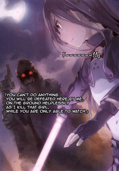 (Death Gun) 「You can't do anything. You will be defeated here by me, on the ground helplessly while I kill that girl, being able to only watch.」