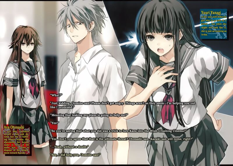 "So you're saying that what you did was a trick to lure Kazu into the 'Wish-Crushing Cinema'?"